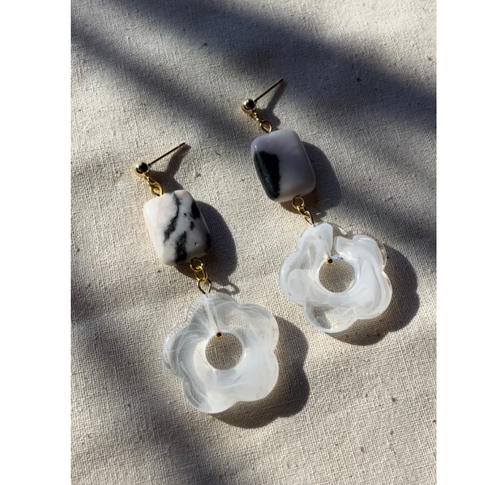 Aro flor blanca y piedra Agrandar imágen