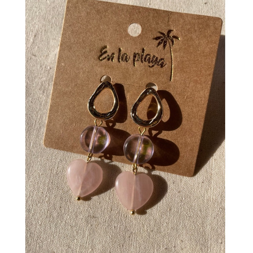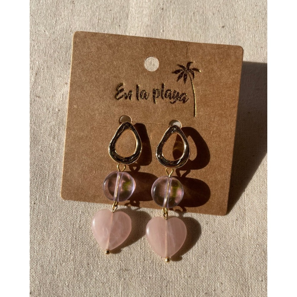 Aro corazón cuarzo Rosa largo Agrandar imágen